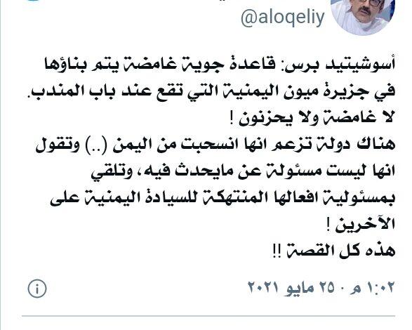 انفوغرافيك المناطق المحرومة من الانتخابات الرئاسية السورية. توافد محترفي اليمن على السعودية. ٦ الطبقات الاجتماعية لسكان اليمن. فيديوهات لاعتراض السعودية صواريخ بالستية من اليمن. مطلوب مدير مشاريع لشركة مقاولات تعمل بمجال الطرق بالمملكة العربية السعودية. اخر اخبار اليمن الان تابع أخبار المشهد اليمني اليوم من مختلف مصادر صحافة اليمن، انباء يمنية عاجلة في المحافظات اليمنيه الشمالية والجنوبية، اليمن الآن مباشر 24 ساعة. تبدأ خلال دقائق قليلة مباراة المنتخب اليمني ضد المنتخب السعودي اليوم السبت 5/6/2021، في تصفيات. اليمن واحدة من الدول العربية التي كانت مهتمة بشكل كبير بمجال بيع وشراء سيارات ومركبات جديدة من مختلف الشركات المصنعة من جميع دول العالم، والتي كانت أكثرها الأمريكية. حالة الطقس المتوقعة اليوم الجمعة. قحاب مغربي مع خليجي 2021. يذكر أن السعوديّة تشن منذ 26 آذار/مارس 2015 حرباً شاملة خلفت آلاف الضحايا من المدنيين ولاسيما الأطفال والنساء وألحقت بالبلاد أضراراً فادحة ببنيتها التحتيّة في هذه الحرب. الحدود السعودية اليمنية، هي الحدود الممتدة بين المملكة العربية السعودية والجمهورية اليمنية. الجوازات السعودية تعلن تمديد هوية زائر لليمنيين المنتظمين في التجديد للفترات أعلنت المديرية العامة للجوازات بالمملكة العربية السعودية عن بدء استقبال إجراءات طلبات.